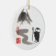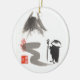 Un peregrino del zen cruza una gran distancia, acercándose a una montaña capsulada nieve. ¡Es una metáfora para alcanzar la aclaración, por supuesto! La pintura original fue hecha con técnicas de la pintura del cepillo del chino en el papel de arroz blanco, y se rinde agradable en estos ornamentos de la porcelana.
