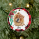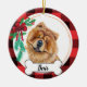 Ornamento de Chow Chow con fondo de búfalo rojo y Navidades garland y bow - ¡El arte fue pintado a mano por mí y puesto a disposición como este adorable adorno! Añada cualquier texto (sugerido: "❤️ mi cerda" o el nombre de su querida) visita www.curella.net para ver un retrato personalizado, pegatinas y más.