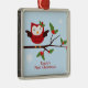 Simple y adorable ilustracion de una lechuza marrón con una bufanda roja encaramada en un árbol sobre un fondo azul claro. Personalice con su nombre, monograma, iniciales, fecha o texto de su elección. Perfecto como regalo de cumpleaños, bizcocho, adorno de decoración infantil, etc
