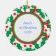 El primer Personalizable de Navidades de Holy Berry Baby contiene un adorable bebé con un adorable bebé en un borde verde, rojo y sagrado con estampado de berry en el frente, mientras que en la parte posterior está el nombre del bebé.