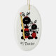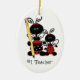 Las mariquitas adorables adornan este ornamento de cerámica formado óvalo, con uno sosteniendo un lápiz grande. El texto negro, en el frente, lee al profesor #1, con el nombre del profesor, en la parte posterior. Personalice todo el texto delantero y de nuevo a juego sus necesidades. Idea excelente del regalo para un profesor este navidad.