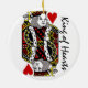Ornamento reversible Rey de Corazones, con blanco en un lado, negro en el otro. Los colores de texto y fondo son personalizable.