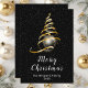 Esta elegante tarjeta de vacaciones de moda puede ser personalizada con su nombre familiar. El diseño presenta un árbol de Navidad de cinta dorada y negra con una baudible. El texto combina el guión manuscrito y las fuentes sans serif modernas para un aspecto elegante y sofisticado. La caída de la nieve, los copos de nieve y las chispas dan un toque festivo y mágico.