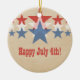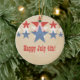 Divertido y elegante Ornamento del Día de la Independencia de las Cascada de Estrellas Rojas, Blancas y Azules, con un fondo de papel falso en textura y filas descendentes de estrellas rojas, blancas y azules. Este único adorno es la manera perfecta de mostrar su orgullo americano este 4 de julio. Fácil de personalizar, simplemente añada tu propio texto en el espacio proporcionado. Este diseño también es ideal para el Día de la Conmemoración, ya que es un placer o una decoración maravillosos.