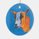 Este ornamento ofrece mi pintura brillantemente coloreada de una cabra enana.