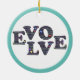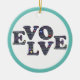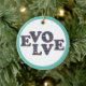 La palabra "EVOLVE" se explica con énfasis en las letras L, O, V. Cada letra contiene palabras y corazones