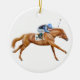 Diseño original de la bella arte de un jinete y de un caballo de carreras del ilustrador Carolyn McFann del estudio de ronroneo de dos gatos en un ornamento del día de fiesta de la calidad para los aficionados deportivos ecuestres.
