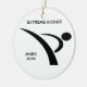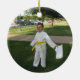 Gran ornamento del navidad de los artes marciales para el combatiente que usted sabe. El frente ofrece una silueta de un karate golpea adentro negro con el pie. Debajo del dibujo es un espacio de encargo por un nombre y un año. La parte posterior tiene un espacio para una fotografía de encargo de su opción.