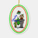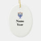 Este es un adorno de Chrismukkah para una familia o una sola persona. El frente presenta una mezcla de imágenes/símbolos judíos y Navidades tradicionales como mistletoe, árbol de Navidad, elfos, un hombre judío con un Kippah, con un bastón de caramelo en el bolsillo y un dreidel delante de él. En la parte posterior puede poner el nombre de una persona o un apellido (apellido) y luego el año. Diseñado por Sheila Cicchi, Brownielocks.com. Todos Los Derechos Reservados.