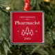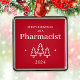 Primera Navidad como farmacéutico adorno rojo para un graduado. Decoración elegante de vacaciones con árboles de Navidad y estrellas.