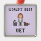 Imagen del arte del pixel que representa un veterinario, un gato de 8 pedazos, un perro de 8 pedazos y las palabras: El mejor veterinario del mundo.