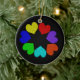 Este ornamento presenta una imagen creada digitalmente de un círculo de corazones de amor. Cada corazón es un color diferente del arcoiris. Los corazones rojo, naranja, amarillo, verde, azul, índigo y violeta son una forma alegre de expresar tu amor por un novio, novia, marido o mujer. El fondo es negro para crear el máximo impacto.