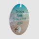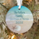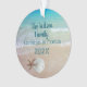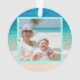 Las vacaciones en la playa familiar siguen siendo adornos para el árbol de Navidad. El diseño de este adorno redondeado es el agua tropical azul del océano y la arena de la playa con conchas. Personalizar con texto en un lado y una foto en el otro. Hay una estrella de mar y un dólar de arena en la parte delantera.