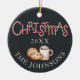 Celebre la temporada con este adorno de fotos personalizado y dulce, que incluye lúbilos de caña de caramelo juguetones "Navidades", galletas de color de agua y cacao, y espacio para la foto de su familia en la parte de atrás. Un conservador encantador para conmemorar sus recuerdos de vacaciones año tras año. Perfecto para regalar a los abuelos, añadir a tu propio árbol, o usar como etiqueta para regalos envueltos extra-especiales. Personalizar con el nombre de su familia y año para un tesoro de vacaciones único.