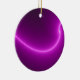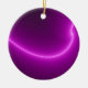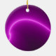 Este adorno tiene una imagen fractal que se parece a un arco de electricidad violeta brillante. El fondo negro se ilumina por la intensidad de la curva púrpura. La imagen está en la parte delantera y trasera del adorno.