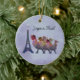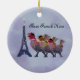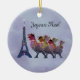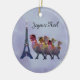Ilustracion gráfico de tres gallinas francesas en la torre Eiffel para los días de fiesta. Aclare encima de la estación con este ornamento del tema del navidad.