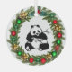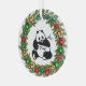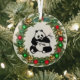 Una corona de Navidades con un panda gigante en el centro decora este adorable adorno de cristal