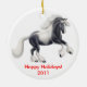 ¡Modifique este ornamento para requisitos particulares rápidamente y fácilmente! El diseño original de la bella arte de un caballo gitano de Vanner del diseñador Carolyn McFann del estudio de ronroneo de dos gatos en un ornamento de la calidad para el caballo aviva.