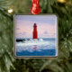 De una pintura de acrílico de Brenda Thour del faro de Algoma Pierhead en Wisconsin, en el lago Michigan con una puesta del sol rosada y púrpura hermosa. Copyright de Brenda Thour 2003.
