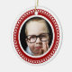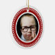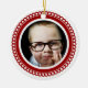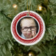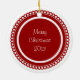 Añada su propio mensaje de encargo de la foto y del personalizado al ornamento personalizado del navidad de la foto con una frontera horneada a la crema y con pan rallado rojo alrededor de la foto. La parte posterior del ornamento tiene un lugar para escribir su propio mensaje personal y el año.