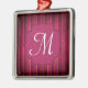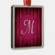 Raspberry Gold Stripe Moderno Hot Pink Púrpura Moda Glamour Glamour Glitz Monograma Navidad Inicial Ornamento Personalizado