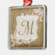 Burlap Country Lace Applitic Fabric Patrón de impresión Monograma Ornamento de Navidad Inicial Personalizado