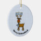 Este adorno presenta a mi judío Rudolph el reno que no sólo tiene una nariz roja, sino que tiene velas en sus corderos como una Menorah como luz extra. El texto de este ornamento es el personalizable que se adapta a usted o a su destinatario. Diseñado por Sheila Cicchi, Brownielocks.com. Todos Los Derechos Reservados. NOTA: Debido al estilo de diseño, sólo se puede comprar en ornamentos CIRCLE.
