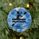 Navidades de ornamentos personalizados de Kayak 20XX. Un kayaker en movimiento sobre un fondo de agua azul y ondulante. ¡Todo el personalizable de texto, delante y atrás!