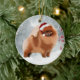 Este ornamento lindo del navidad ofrece un gorra adorable Pomeranian revestido de Santa en ambos lados.