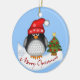 Este ornamento lindo del navidad con el pequeños pingüino y árbol de navidad puede ser modificado para requisitos particulares cambiando el color de fondo en ambos lados. El texto es parte del diseño.