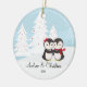 ¡Nuestro ornamento de encargo anticuado único del navidad del amor del pingüino ofrece un par lindo del pingüino fijado en un fondo de la nieve del árbol de navidad! ¡Personalice con su información y fecha y usted están todos fijan para ir! El regalo anticuado maravilloso del recuerdo para primer navidad de los pares y una gran adición a usted navidad adorna la colección.