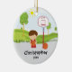 Jugador de básquet rojo y blanco anticuado personalizado que celebra un baloncesto con un ornamento del navidad del aro de baloncesto. Un regalo del navidad de la maravilla seguro que se atesorará durante muchos años para venir.