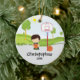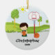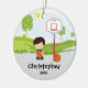 Jugador de básquet verde y blanco anticuado personalizado que celebra un baloncesto con un ornamento del navidad del aro de baloncesto. Un regalo del navidad de la maravilla seguro que se atesorará durante muchos años para venir.
