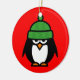 Ornamento lindo del navidad del dibujo animado del pingüino del invierno. Personalizable con el texto o la foto en la parte posterior. ¡Añada su saludo o los deseos de Navidad como Felices Navidad! Dibujo animado divertido del pingüino con el gorra verde de las lanas.