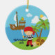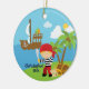 ¡Nuestro ornamento personalizado y anticuado único del navidad del pirata ofrece al pequeño muchacho más lindo del pirata fijado en fondo azul del agua del océano con un barco pirata, una palmera y un cofre del tesoro! ¡Personalice con su información y fecha y usted están todos fijan para ir! El regalo anticuado maravilloso del recuerdo para su árbol de navidad y una gran adición a usted navidad adornan la colección.
