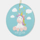 Personalice el ornamento lindo anticuado del navidad del unicornio que ofrece el unicornio mágico fijado en un fondo de las azules turquesas.