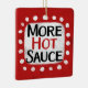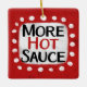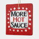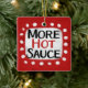 "Más Salsa Caliente" es un lindo diseño de texto en rojo con texto en negro y rojo, junto con una forma de acento blanco y puntos caprichosos de textura blanca que lo rodean.