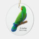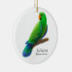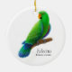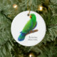 Diseño original de la bella arte de un loro verde de Eclectus del diseñador Carolyn McFann de la ornamentación en un ornamento precioso del día de fiesta para los amantes del loro.