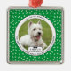 Saludo favorito, adiós más fuerte adiós Memorial Dog Photo Ornament con un patrón de hueso y patas verdes y blancas con un elemento de hueso de perro personalizado con el nombre y la fecha de tus mascotas. Solo agrega tu foto y nombre de mascota y estás listo para irte. Visite nuestra tienda para ver nuestra amplia selección de Navidades ornamentos de fotos de perros.