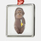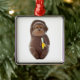 Mono de chocolate sosteniendo un adorno navideño bananero metalizado