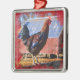 Ornamento metalizado superior con el gallo en la cerca del corral.