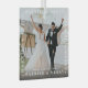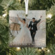 Conmemorar tu matrimonio este año con este adorno de vidrio fotográfico de las parejas. Con el texto 'CASADO Y MERIDO' en tipografía blanca enmarcando una imagen de su elección, adorables espaciadores de corazón blanco, nombres y año.