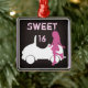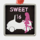 Dulce moderno 16 Ornamento de Navidad. Chica de silueta y coche en rosa, marrón y blanco.