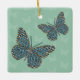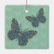 Las alas, el cuerpo y las antenas de una mariposa monarca están adornadas con patrones encontrados en mosaicos y tallados en los edificios y objetos decorativos de Marruecos. El azul, el verde, el oro, el blanco y el rojo intenso pintan estos motivos geométricos y de inspiración floral, aportando colores destacados e importantes en las obras de arte marroquíes.