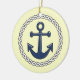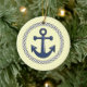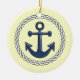 El ornamento colgante de cerámica náutico temático del día de fiesta tiene un ancla cercada.