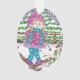 Un adorable adorno navideño acrílico oval con el ilustracion de un valiente chica aprendiendo a esquiar . © Ilustraciones ArianeC