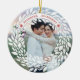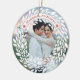 Este elegante adorno es perfecto para una pareja que celebra a sus primeros Navidades casados. Incluye una corona alrededor de la frontera y las palabras "Casado y Cereza" en un marco curvo en la parte inferior. Añade una foto de la pareja feliz. La parte posterior contiene los nombres y la fecha del boda.