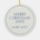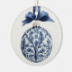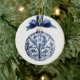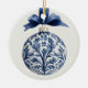 Este ornamento de vacaciones de cerámica redonda presenta un hermoso adorno navideño chinoiserie azul marino y blanco con una cinta azul a juego. Personaliza tu elección de nombre y mensaje especial de vacaciones en la parte trasera. Ideal para las etiquetas de regalo y los favores de fiesta.