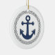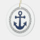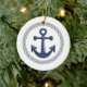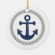 El adorno de vacaciones con temática náutica tiene un ancla cercada en la parte delantera, y un lugar para que entres el año en la parte trasera.