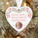 Honrar la memoria de un ser querido con este elegante adorno de Navidad en memoria de acrílico que incluye una foto de un personalizado. Este ornamento en forma de corazón, construido a partir de acrílico duradero, está adornado con un hermoso diseño floral que simboliza el amor y el recuerdo, lo que lo convierte en un tributo único y duradero. El adorno conmemorativo con imágenes puede ser personalizado con una imagen preciada, transformándola de una decoración simple en un adorno fotográfico que mantiene vivos a recuerdos preciosos. Como adorno conmemorativo personalizado, está diseñado cuidadosamente para aquellos que quieren celebrar y recordar las vidas de los que extrañan, especialmente durante la temporada de fiestas. Este adorno navideño acrílico conmemorativo combina belleza y versatilidad, adaptado perfectamente a cualquier decoración de vacaciones. Ya sea que estés buscando ornamentos conmemorativos personalizados para tu árbol o un adorno conmemorativo para Navidades como un regalo de corazón, este artículo personalizado ofrece un recordatorio significativo del amor y el recuerdo. Perfecto para las familias que buscan un adorno de Navidad conmemorativo de un personalizado o cualquier persona que busque un adorno conmemorativo de Navidades con un toque personal, esta pieza es una encantadora adición a cualquier colección de adornos conmemorativos de Navidad. Traer calor y sentimiento a las festividades con este adorno conmemorativo acrílico —una manera sincera de recordar, honrar y mantener a los seres queridos cerca